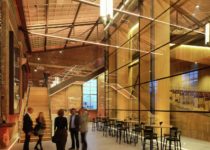 A fim de manter o caráter único dos espaços interiores e exteriores, o projeto é contido, com uma análise cuidadosa para quaisquer das mudanças empreendidas. Para garantir a experiência espacial dos grandes salões históricos, um auditório foi projetado em vidro. Isso caracteriza as adições feitas, com ênfase na transparência que fica em frente da natureza introvertida do tecido histórico existente. No entanto, o auditório situa-se de forma natural dentro do edifício protegido, com o uso de vidro criando longas linhas de visão através da sala; ver e ser visto se torna um fio condutor. Este convívio faz parte das tradições do teatro, com o aspecto social muitas vezes tão importante quanto a próprio peça. A força da intervenção reside na precisão da restauração, combinada com a natureza radical das adições.