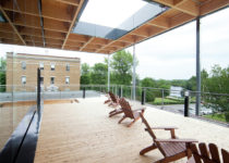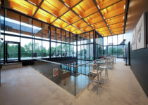 Nossa proposta arquitetônica é baseada numa malha estrutural de vigas transversais de madeira laminada. A importância da madeira é comunicada com claridade e, assim, apoiamos o desenvolvimento local de novas tecnologias que agregam valor a este recurso natural que tem um melhor impacto meio-ambiental que o aço e o concreto.